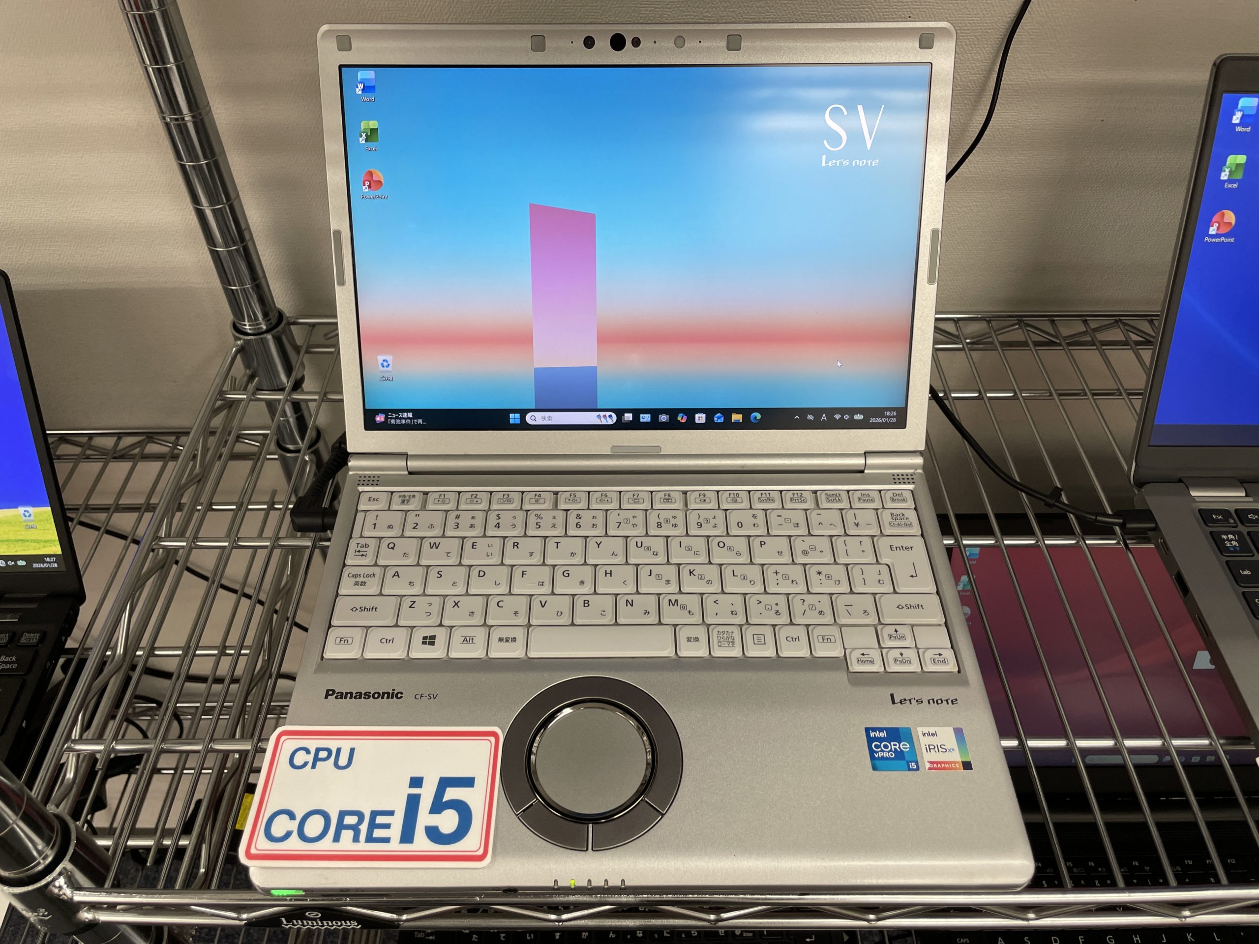 当店の中古パソコンは全品マイクロソフトのオフィスソフト(ワード・エクセル・パワーポイント)がサービスとして入っていますので安心です。